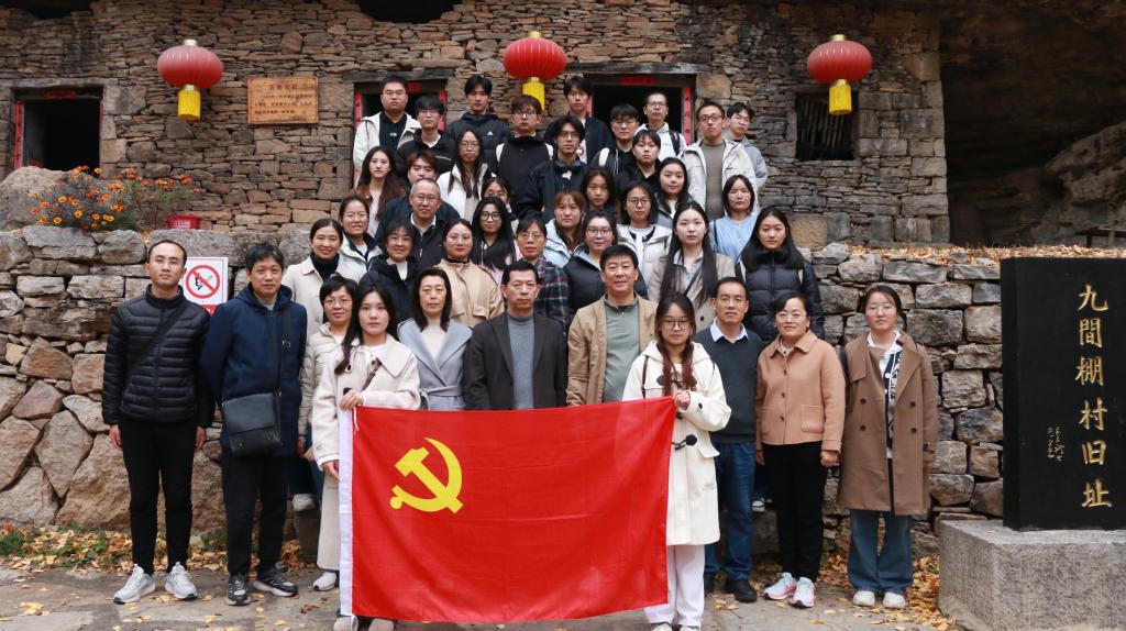 下午,活动延伸至九间棚红色教育基地。在九间棚博物馆,师生党员认真听讲解员讲述,九间棚村如何在党的领导下,通过团结协作、艰苦奋斗,将原本贫困落后的小山村建设成为如今远近闻名的富裕村、文明村的奋斗历程。这些真实而感人的故事,让师生党员们深受触动,进一步坚定了他们传承奋斗精神、勇担时代使命的决心。