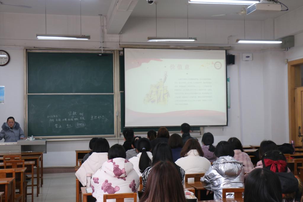 于3月3日下午3:30在综合楼203教室组织开展以“深刻领悟爱国教育以及核心价值观”为主题的教育班会,会议由国产自拍