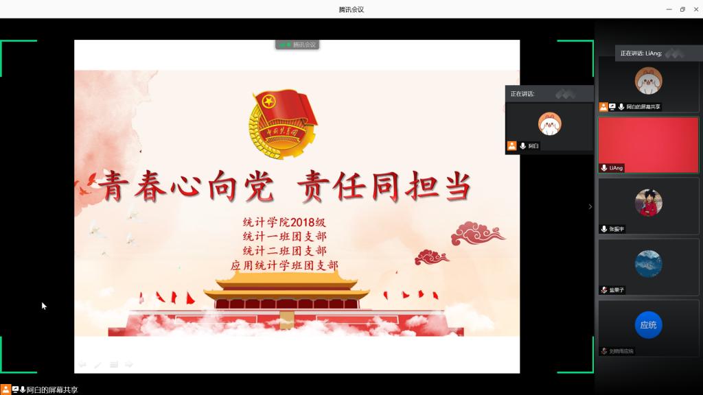 2018级三个团支部借助腾讯会议,线上组织开展了以“青春心向党,责任同担当”为主题的团日活动。