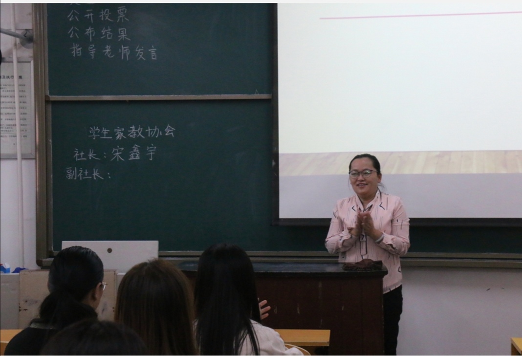 “学生家教协会”换届活动在应用统计班顺利举行。社团指导老师李宴美、社团前任社长孟居远及社团全体成员出席了换届活动。活动由国产自拍