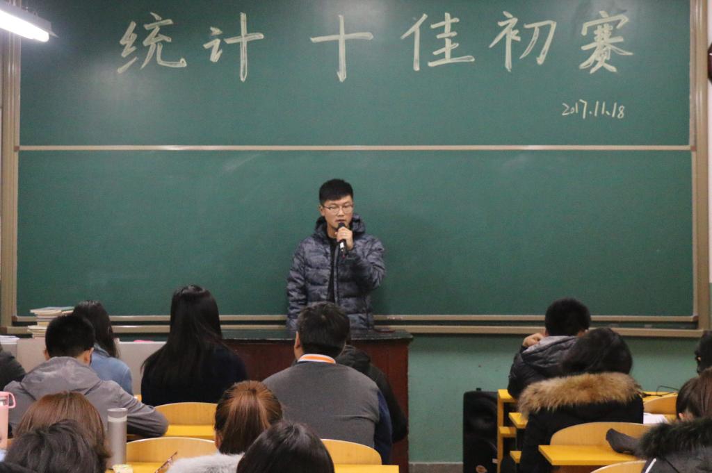 各个班的选手准时来到比赛现场,精神饱满,跃跃欲试。在主持人简洁的开场白之后,比赛正式开始,选手按照顺序依次上台,跟随伴奏演唱事先准备好的曲目。选手们态度认真,感情真挚,演唱的歌曲扣人心弦,获得了观众们的阵阵掌声。表演完毕后,四位评委分别打分,分数高者可进入复赛。其中,来自统计二班的王洋和赵明坤二人组成的“杨坤组合”,联袂带来一首《童话》,成为本次比赛一道亮眼的风景。