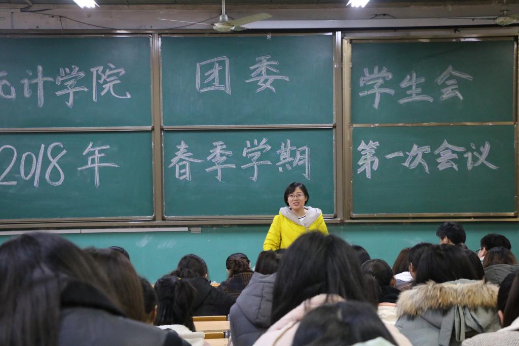特集合大一至大四各年级学生,召开团委学生会2018年春季学期第一次会议。学院党委副书记季中,团委副书记李玲,辅导员助理周玉亮、吕珊珊出席本次会议。