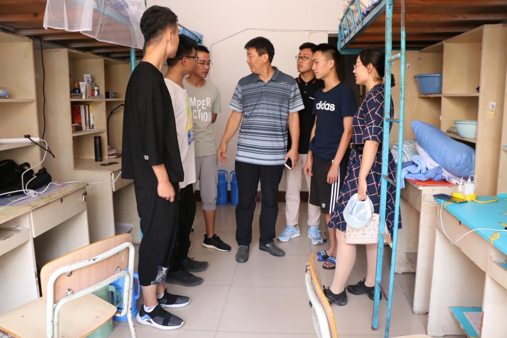 党委副书记季中、团委副书记李玲探访新生宿舍,细致地询问了新生的住宿情况,并希望新生们尽快熟悉统院生活,有问题及时与老师、同学沟通,收获快乐的大学时光。
