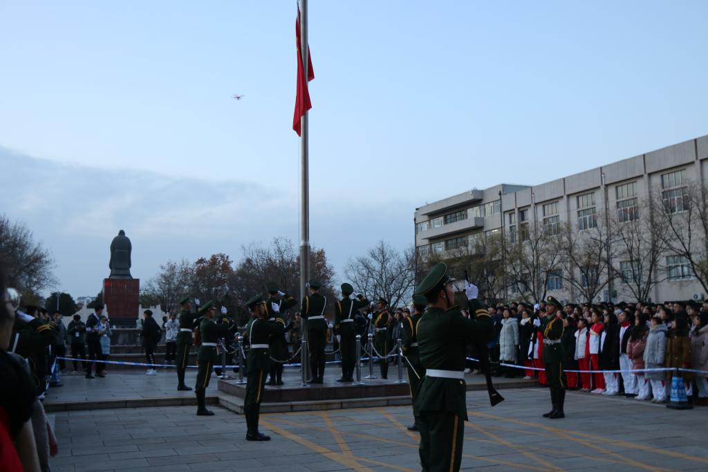 组织2018级全体学生于孔子文化广场举行升旗仪式。国产自拍