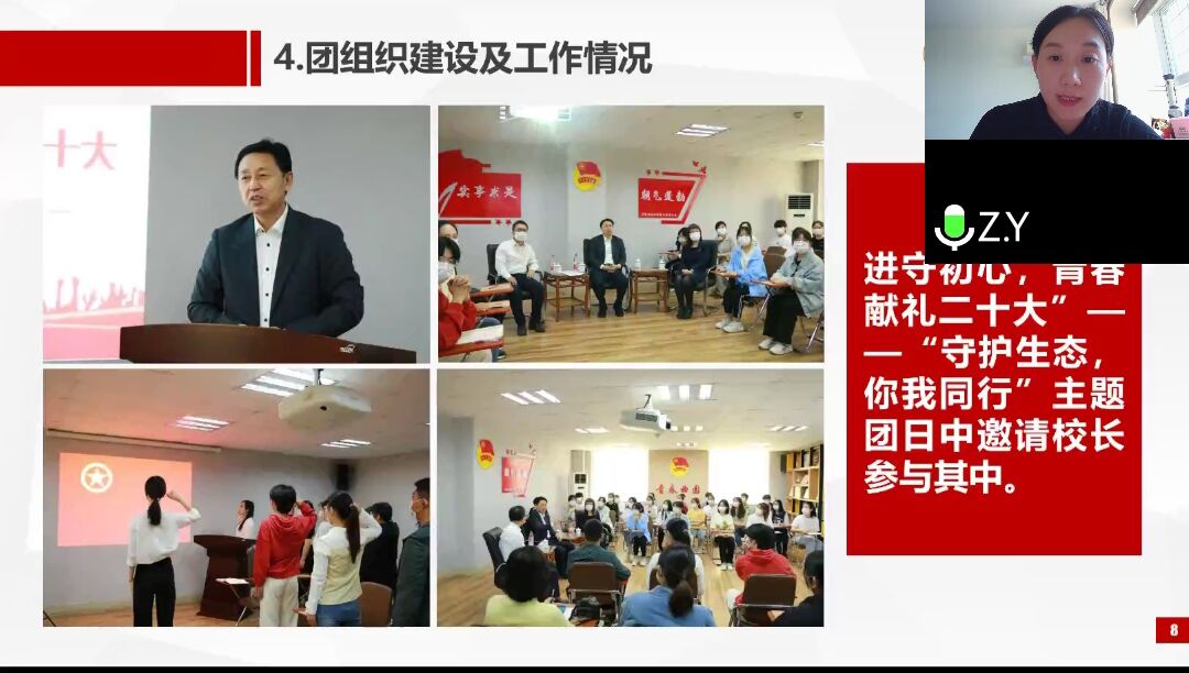 次日上午,“党史团史”讲座与当兵入伍政策宣传会议依次进行。首先,校团委副书记张颖从团的发展与教育、学生会的机构与设置、学生社团、青年志愿者服务活动、曲园风物、曲园榜样六个方面展开宣讲,帮助同学们了解了校团委的工作内容和校园环境。随后,王丹丹分别从入伍条件、入伍程序、军营成才、优惠政策、退役保障与扶持五个角度向同学们讲解了入伍政策并鼓励大家积极参军。同学们反响热烈,燃起了参军入伍、保家卫国的激情。