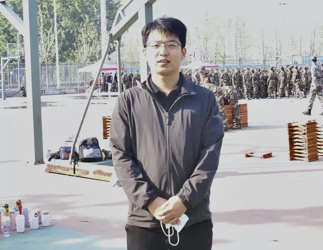 2022级全体新生积极参加,2022级新生辅导员王旭时刻关注军训情况。