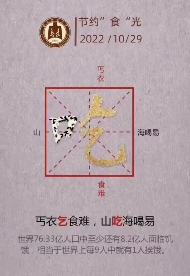 于10月29日举办“不负‘食’光,节约爱粮”海报设计大赛和“光盘行动”线上打卡活动。本次活动面向国产自拍