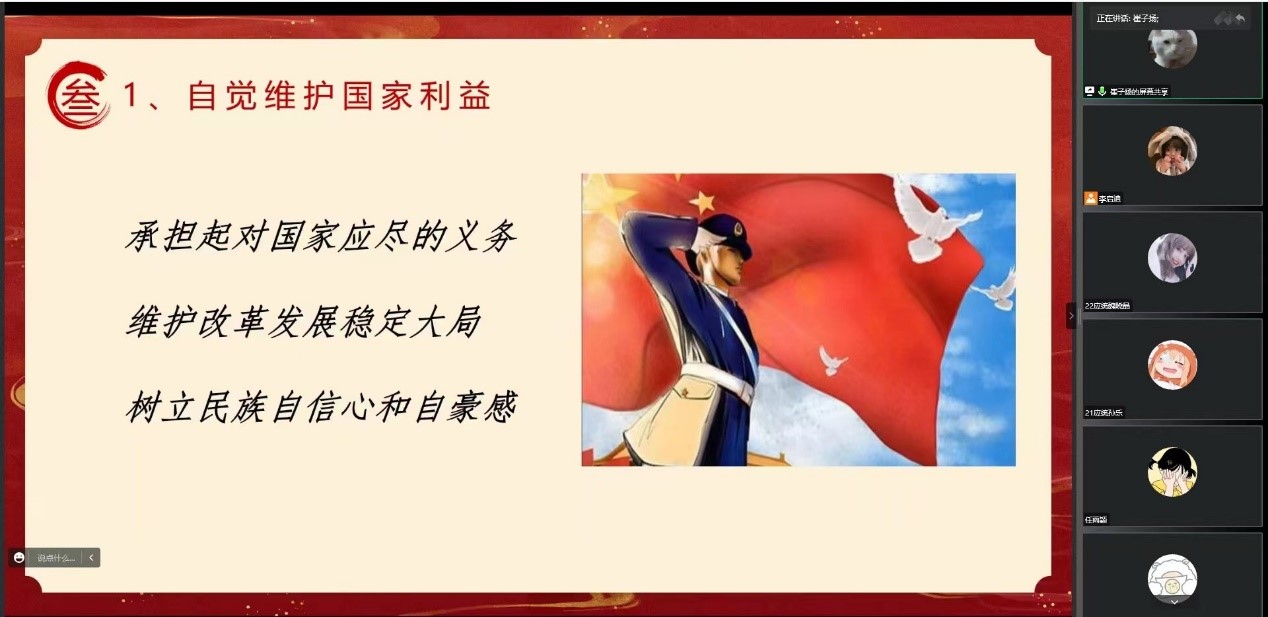 于10月25日开展线上“愿以存心寄华夏,且将岁月赠山河”爱国主义讲座,2021级和2022级全体学生参加。