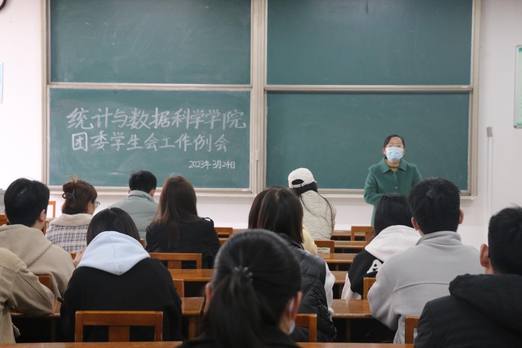 团委学生会工作例会于2023年3月24日在综合楼303举行。学院团委书记李宴美和主席团成员及各部门部长参加。