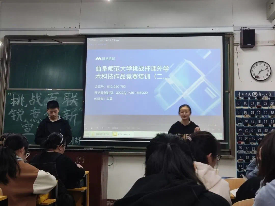 于4月2日在2022级固定教室举办“挑战互联,锐意创新”挑战杯暨互联网+大赛宣讲会。活动由国产自拍