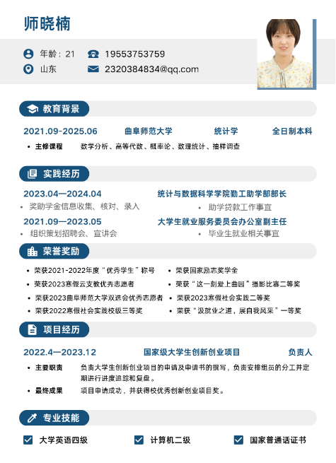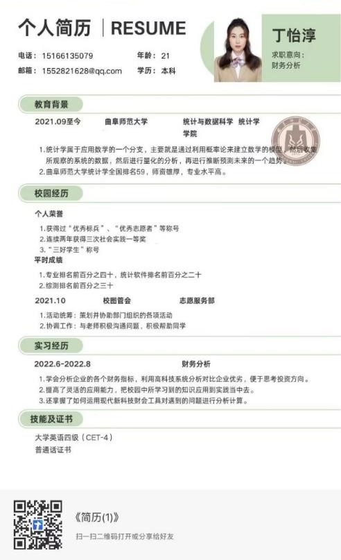 活动伊始,同学们积极踊跃报名,结合自身情况与社会需求,从专业、就业取向等方面进行个人简历的设计与填写。活动过程中,紧紧围绕“破简而出,化羽成蝶”主题展开设计,参赛选手提交的参赛作品内容完整真实,版面格式清晰,展现出同学们高超的设计水平。活动结束后,由就业实习服务部进行院级评选,最终评选出一等奖两名、二等奖三名、三等奖四名。
