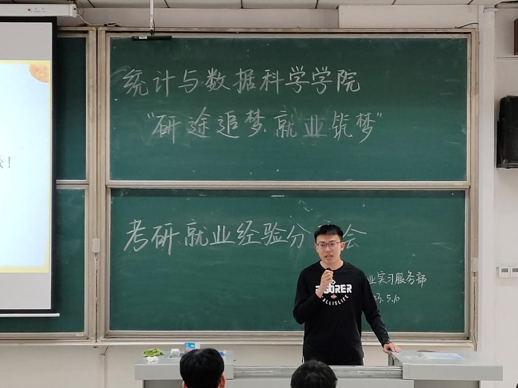 于5月10日下午两点在综合楼106教室举办 “研途追梦,就业筑梦”考研就业经验分享会,本次活动共邀请了学生党员李玥橦、徐静、李英汉,考研代表王晓禄、柳漉、王孟迪、钱现行和魏淑贤主讲,各年级学生积极参与此次活动。