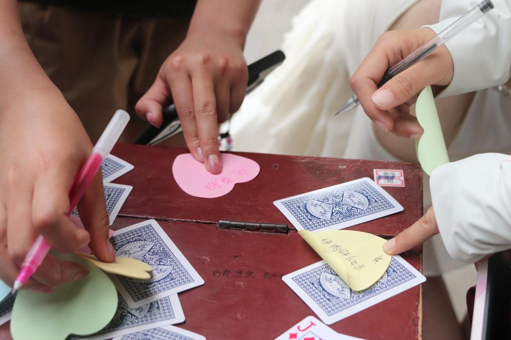 活动共分为游戏与交换祝福两部分。在游戏环节中,同学们进行了“逛三园”“诺亚方舟”与“齐心协力翻纸牌”三个项目,游戏简单有趣,团队的参赛形式更考验了同学间的默契与合作能力,展示了统院学子的蓬勃朝气;在交换祝福环节,同学们认真写下对彼此的祝福,展现了同学们友爱互助,善良诚实的良好精神风貌。
