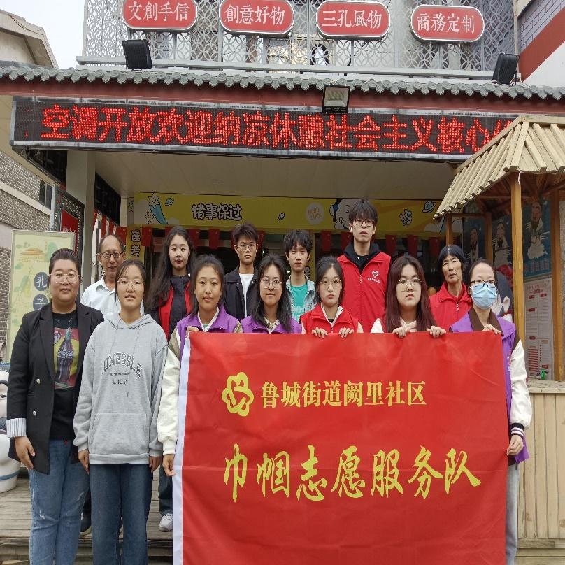 的大学生志愿者以及曲阜市机关幼儿园党员志愿者共180余人在后作街天福园红帆驿站开展了文明旅游进景区志愿服务活动,每天服务游客上万人。