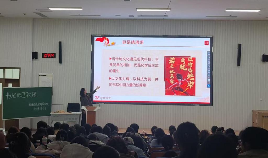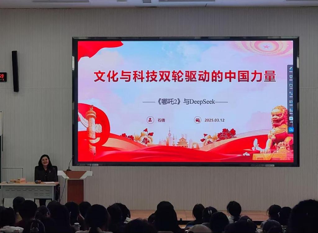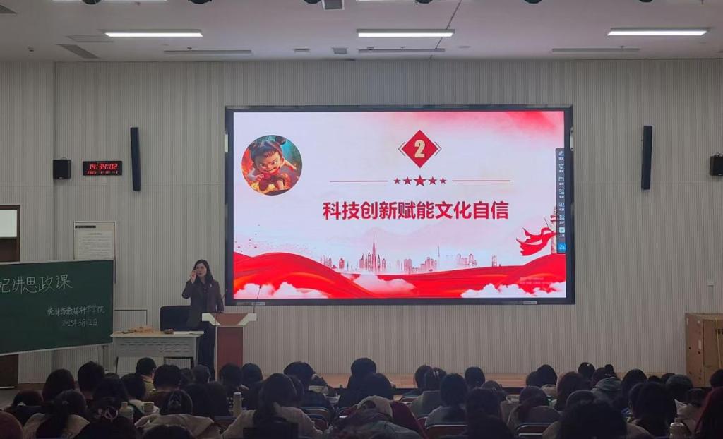思政课上,石倩书记首先从情感、视觉、文化代言方面,阐述了《哪吒2》这部优秀电影在文化传承与创新发展中展现的年轻活力与强大影响力,石书记表示,《哪吒2》的成功表明中国文化产业在年轻一代的推动下,已经具备了强大的实力和竞争力,能够在全球文化市场中占据一席之地。接着,石书记又从科技创新加持文化自信的角度进行讲述,她指出《哪吒2》的出现为中国文化在国际舞台上争取了话语权,并强调文化的传播离不开科技创新的加持。