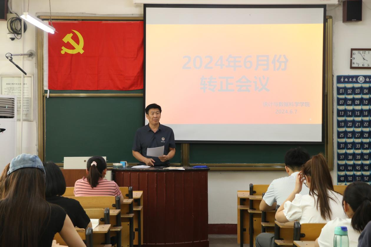 会议第二项,由李宴美老师主持开展了2024年第一批预备党员接收会议,讨论刘芳雨、周灯、周文琪、陈珺、陈添硕、赵胜男、赵京亮、宋倩、李擎、李卓阳、张国泰十一位同志预备党员接收的问题。季中书记对本次会议做出总结,代表党支部全体成员对这11名同志表示了由衷的祝贺。他表示,这11名同志都是国产自拍