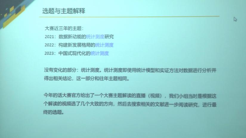 苏玉霞进行了统计建模大赛的相关知识的讲解,从赛事本身、选题、注意事项以及经验分享四个方面进行介绍,聚焦竞赛选题并讲述竞赛过程中的诸多细节。