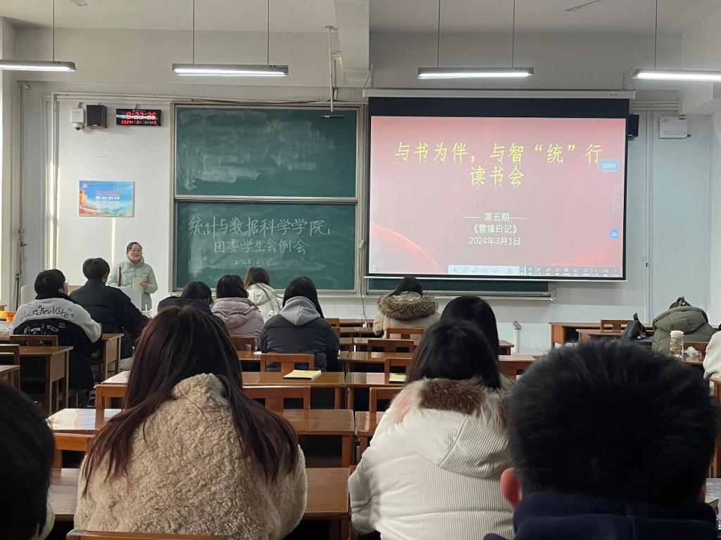 于3月1日上午9点30分在综合楼203举行“与书为伴,与智‘统’行”第五期读书会。本次读书会围绕《雷锋日记》展开,由学院团委书记李宴美主讲,学生会各部门部长参加。
