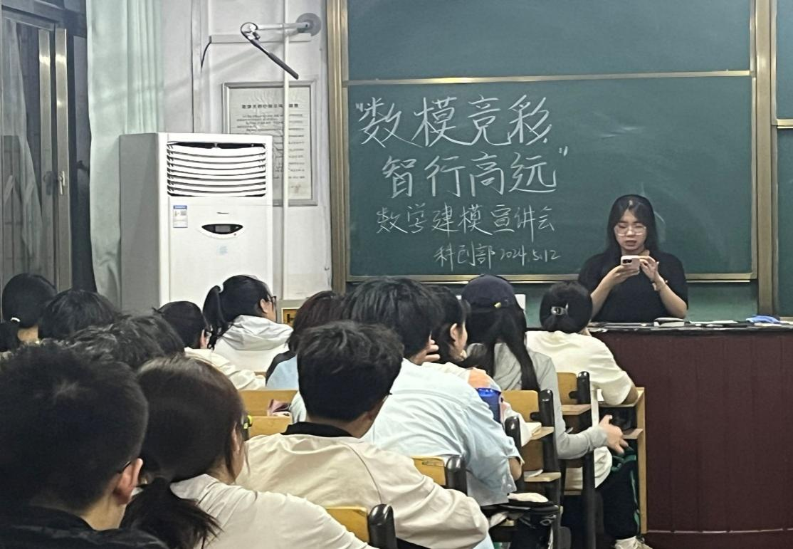 于5月12日19:00在2023级自习室举办“数模竞彩,智行高远”宣讲会活动,2023级全体本科生积极参与此次活动。