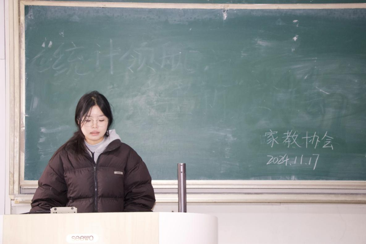 在家教协会见面会中,社团成员们详细介绍了家教兼职的流程以及家教的意义,这让新成员充分熟悉接单的过程,了解到进行家教的优势。接着由陈淼淼同学补充接单的技巧,这让新生更加快速地获取接单的经验。