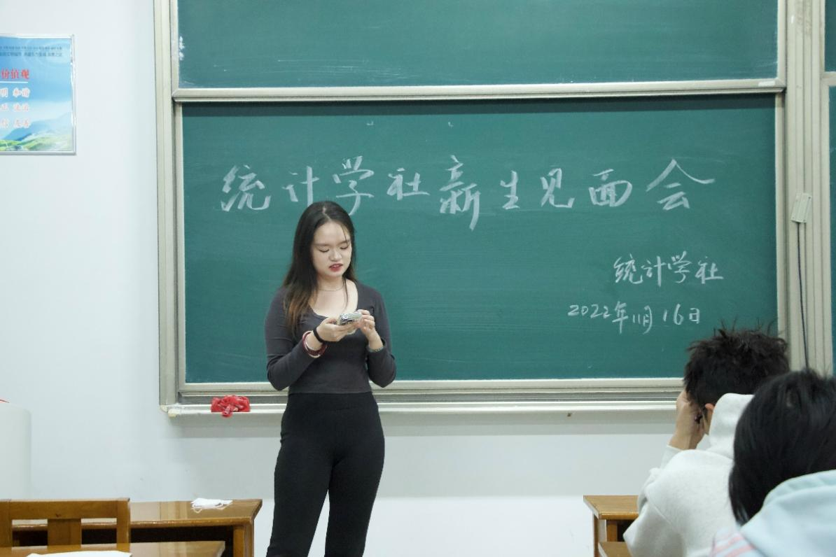 在统计学社见面会中,首先由社长陈宁康简单致辞欢迎新成员,随后几位社团成员分发小礼物,接着社长便带领新成员通过一系列的“破冰”游戏,进一步拉近了彼此之间的距离,也增加了新老成员之间的熟悉程度,最后,由刘润松同学传授了部分学习数学的方法和技巧。