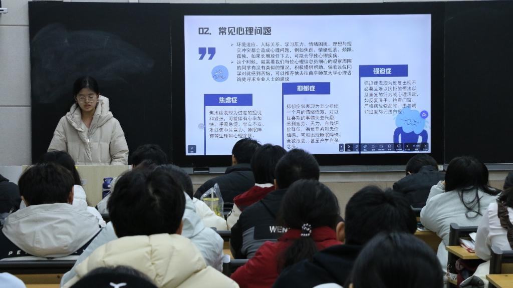 该宣讲分别围绕心理信息员职责、心理危机预防及常见心理问题识别与应对展开讲解,以强化心理信息员对其角色的理解,帮助同学们更好地了解和重视心理健康。在培训过程中,宣讲员耐心细致地为心理信息员们讲解心理健康知识,传授如何有效进行心理疏导,以及如何缓解同学们的压力的方法,指出每一位心理信息员在守护心理健康方面的责任。此次活动不仅促进了心理健康知识的广泛传播,也有效地营造了良好的心理健康氛围,增强心理信息员的责任担当,为未来心理健康工作的开展奠定基础。
