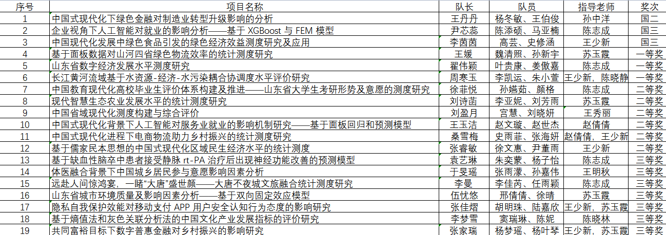 本次大赛充分体现了统院学子在学习统计与应用统计的良好氛围,展现了统院学子朝气蓬勃、积极进取的精神状态和勤奋好学、学而不厌的学习状态,增强了统院学子在数据挖掘、数据分析、运用统计方法及计算机技术处理数据等方面的能力。