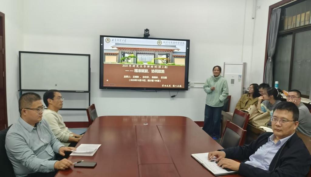 于10月15日在统计楼106室举办主题为“精准赋能,协同致胜”的导师培训交流会。