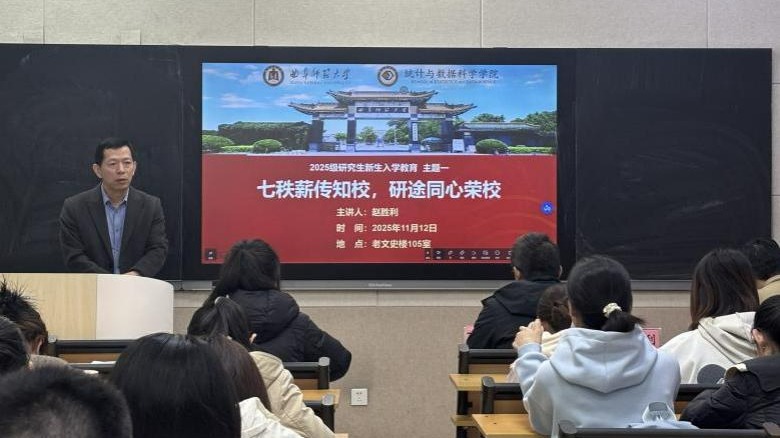 于11月12日在老文史楼105室举办2025级研究生新生入学教育大会,邀请了院长赵胜利、党委副书记季中、研究生工作负责人王文武、研究生导师尤洪龙和研究生辅导员管阳为新生开展入学教育。